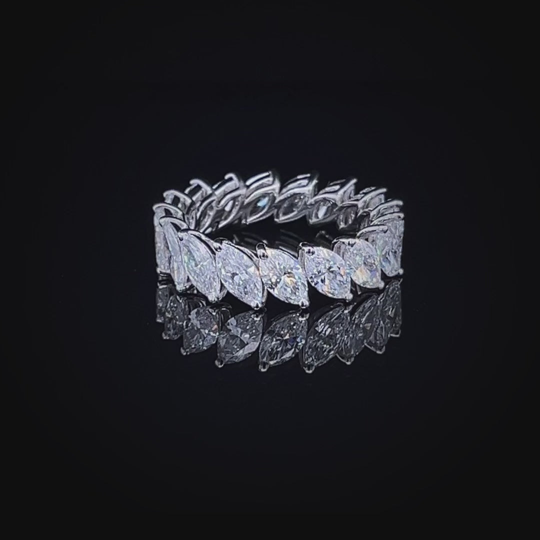Transform your jewelry collection with our marquise-shaped white diamond ring. This exquisite ring showcases a total of 5.07 carats of brilliant white diamonds, each meticulously cut into a marquise shape and weighing 0.30 carats. The diamonds are set in a sleek gold band that weighs 4.52 grams, combining strength and beauty. This ring is an exceptional choice for engagements, anniversaries, or any moment you want to make unforgettable.