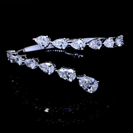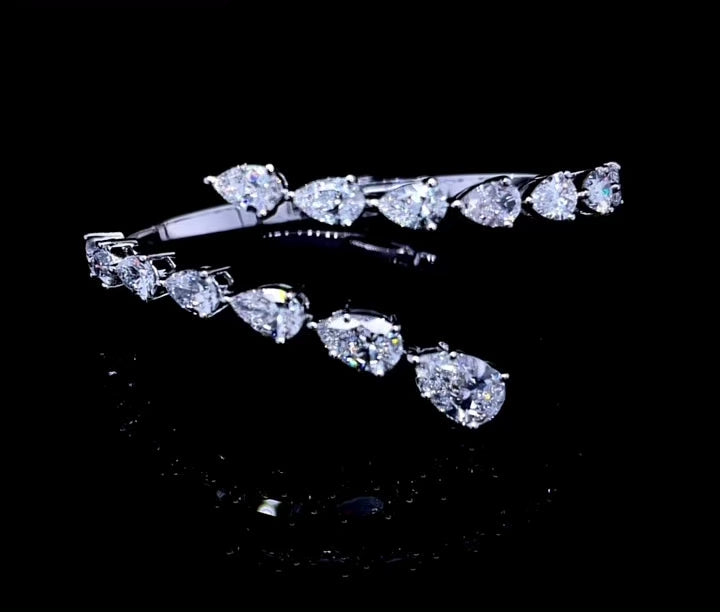 Elegant and timeless, this 1.5CT pear graduated diamond bangle is a statement accessory that exudes sophistication. Perfect for special occasions or everyday wear, its sparkling diamonds will add a touch of luxury to any outfit. Expertly crafted with fine attention to detail, this bangle is a true testament to superior quality and design.