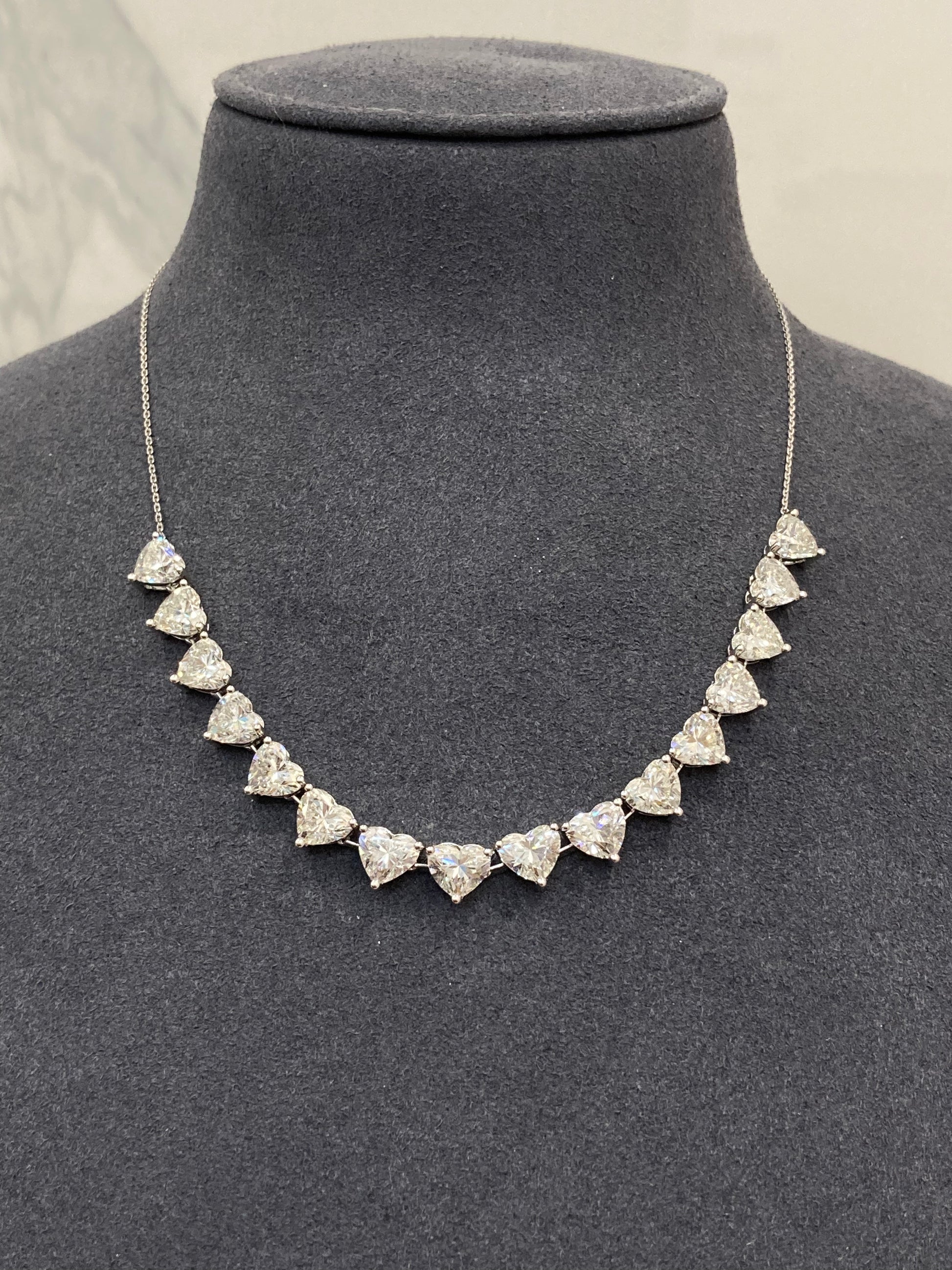 This elegant necklace features a total of 19.48 carats of sparkling diamonds, with each individual stone weighing 1 carat. Crafted with 14.28 grams of gold, it is the perfect combination of luxury and sophistication. Elevate any outfit with this stunning heart-shaped diamond chain necklace.