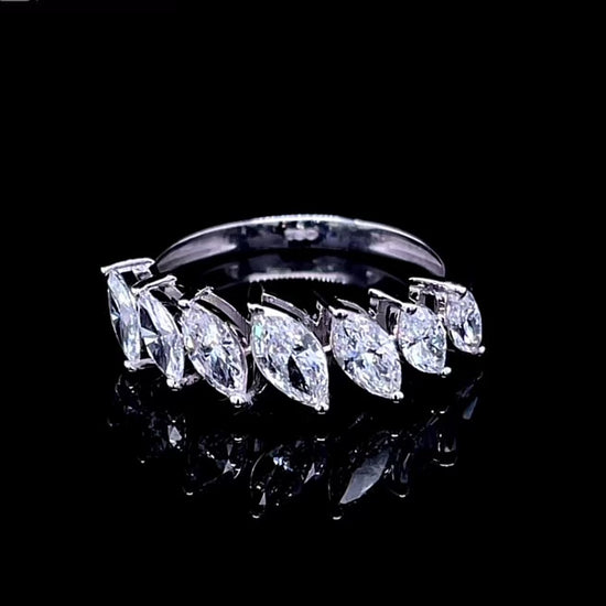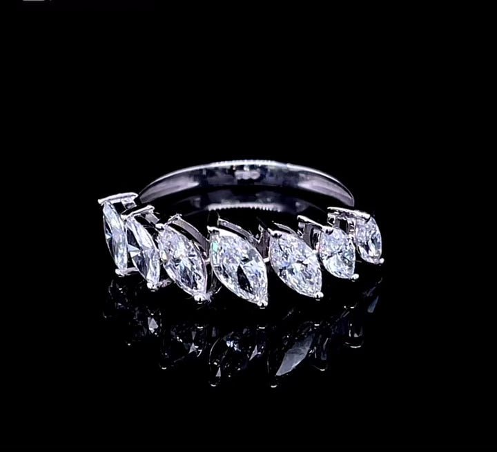 25PT marquise graduated half eternity band offers a unique and elegant design for any special occasion. The marquise cut diamonds provide a timeless and sophisticated look, while the graduated setting gives a modern twist. Made with quality materials, this band will add a touch of luxury to any outfit.