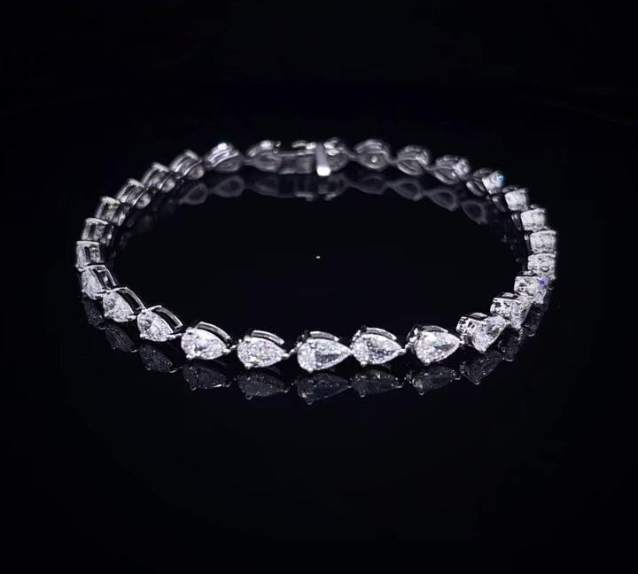 Elevate your elegance with the 25PT Pear Diamond Bracelet, expertly crafted to showcase the brilliance of pear-shaped diamonds totaling 25 points. This refined piece offers a delicate yet striking sparkle, perfect for adding a sophisticated touch to any ensemble. Its precise design ensures both comfort and durability, making it an ideal choice for those who appreciate timeless luxury and expert craftsmanship.