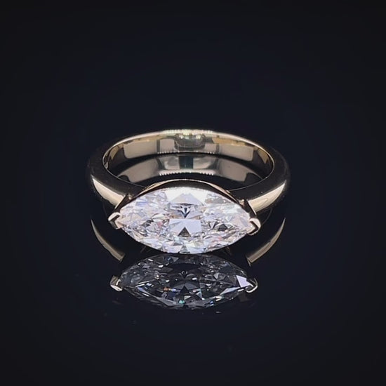 This 2-carat marquise diamond ring set in yellow gold highlights expert craftsmanship and elegant design. The marquise cut maximizes the diamond’s brilliance while creating a graceful, elongated shape that enhances the finger’s appearance. Crafted in warm yellow gold, this ring combines classic sophistication with a distinctive style, ideal for those seeking a refined and timeless piece.