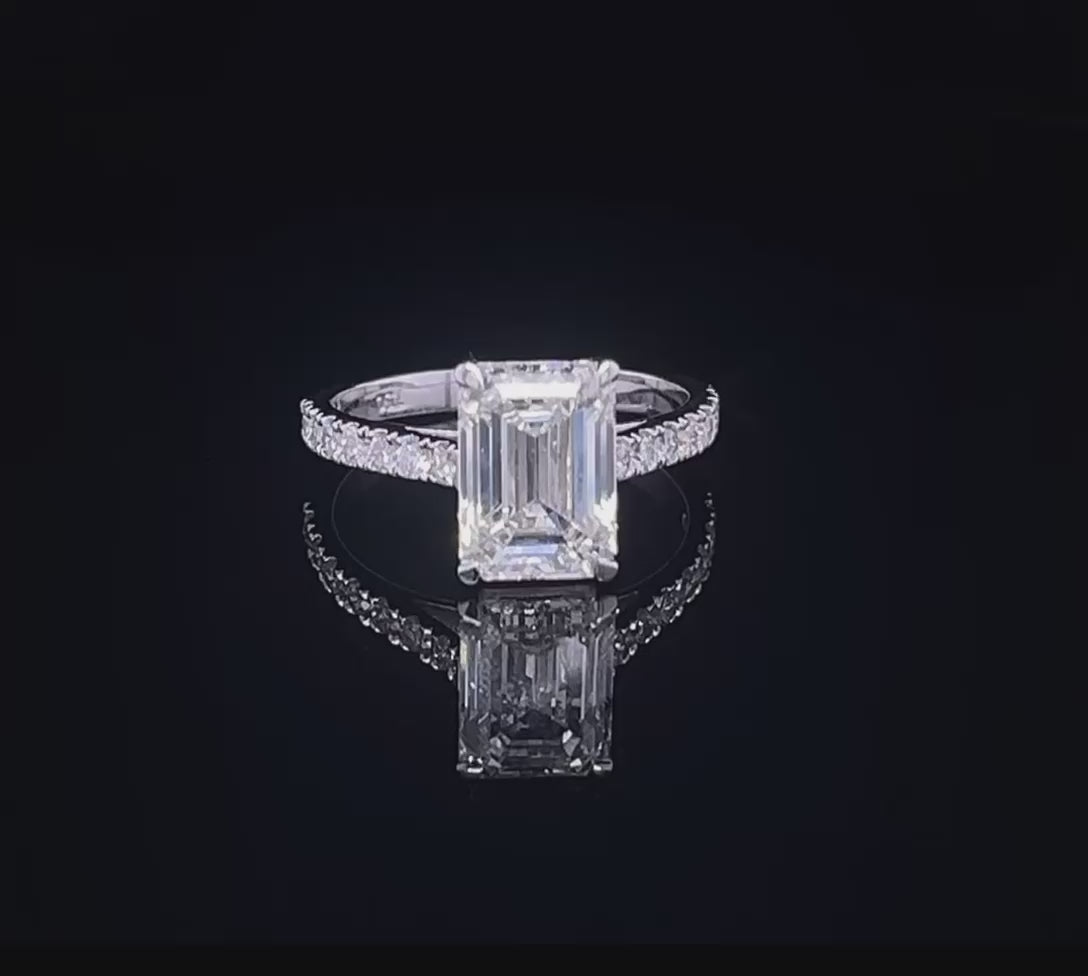 3CT EMERALD W/SIDE DIAMOND SOLITAIRE RING (ARJS3158)