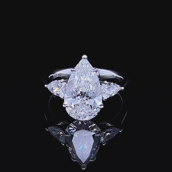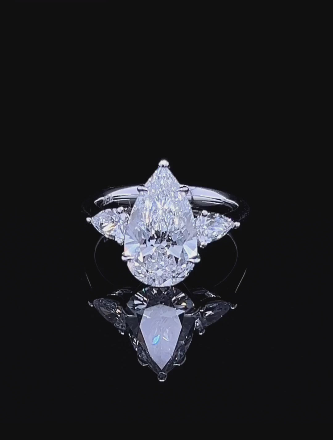 Discover elegance and luxury with our 3CT PEAR TRIOLOGY RING. Featuring a stunning 3.52 carat diamond and 4.12 grams of gold, this ring exudes sophistication and glamour. Make a statement with this timeless piece and elevate any outfit.
