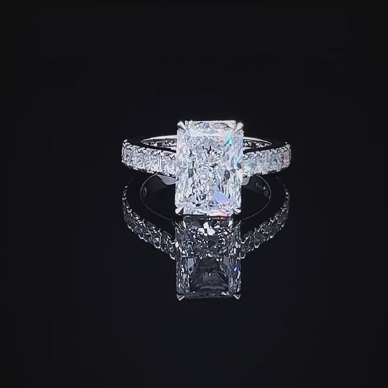 Featuring a stunning 4.03-carat radiant-cut diamond, this exquisite piece radiates light and sparkle, offering an unforgettable visual display. Designed to capture the essence of luxury, this ring is the ultimate symbol of love, commitment, and sophistication. This ring is crafted to perfection. Every detail, from the setting to the band, is designed to showcase the diamond’s beauty while ensuring durability. Each stone is carefully handpicked for its clarity, color, and exceptional quality.