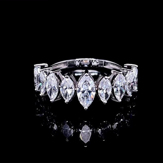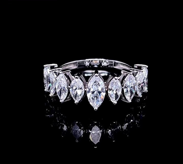 This elegant 40pt marquise graduated half eternity diamond ring adds a touch of luxury and sparkle to any outfit. The marquise diamonds are skillfully graduated, creating a stunning and unique design. The perfect piece for any special occasion, this ring exudes sophistication and style.