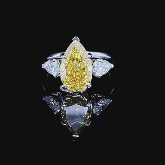 4CT FANCY YELLOW PEAR TRIOLOGY RING (ARJS3245)