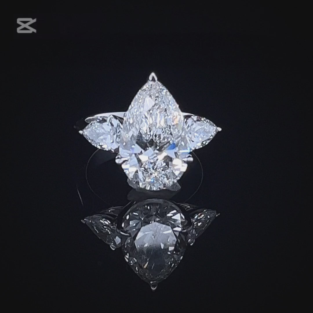 Expertly designed, the 5 CARAT PEAR TRIOLOGY features 6.03 CT total diamonds, 5.73 grams of gold, EF color, and VS1 clarity. Crafted with precision, this luxurious piece radiates elegance and sophistication, making it a stunning addition to any collection. Enhance your style with this exquisite trilogy.