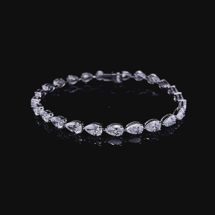 This 50-point pear diamond bracelet features expertly cut pear-shaped diamonds, each weighing 0.50 carats, set to enhance their brilliance and clarity. The design balances elegance with precision craftsmanship, making it an ideal accessory for sophisticated occasions or refined everyday wear. Its timeless appeal ensures lasting value and style.