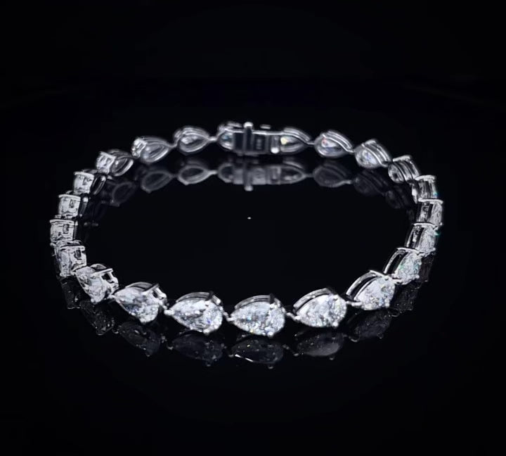 Expertly crafted, this elegant 50Pt pear diamond bracelet adds a touch of luxury to any outfit. The lustrous pear-shaped diamonds are carefully set in a classic design, making it the perfect accessory for any occasion. Elevate your style with this stunning piece.