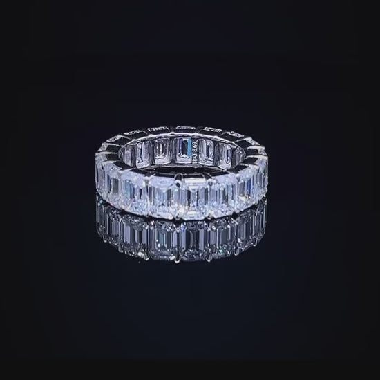 Expertly crafted, our 50PT Emerald Full Eternity Band showcases 8.69 carats of sparkling, emerald-cut diamonds set in 6.51 grams of high-quality gold. Add a touch of luxury and elegance to any outfit with this stunning, timeless piece. Perfect for special occasions or everyday wear.
