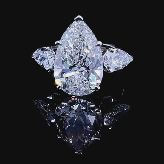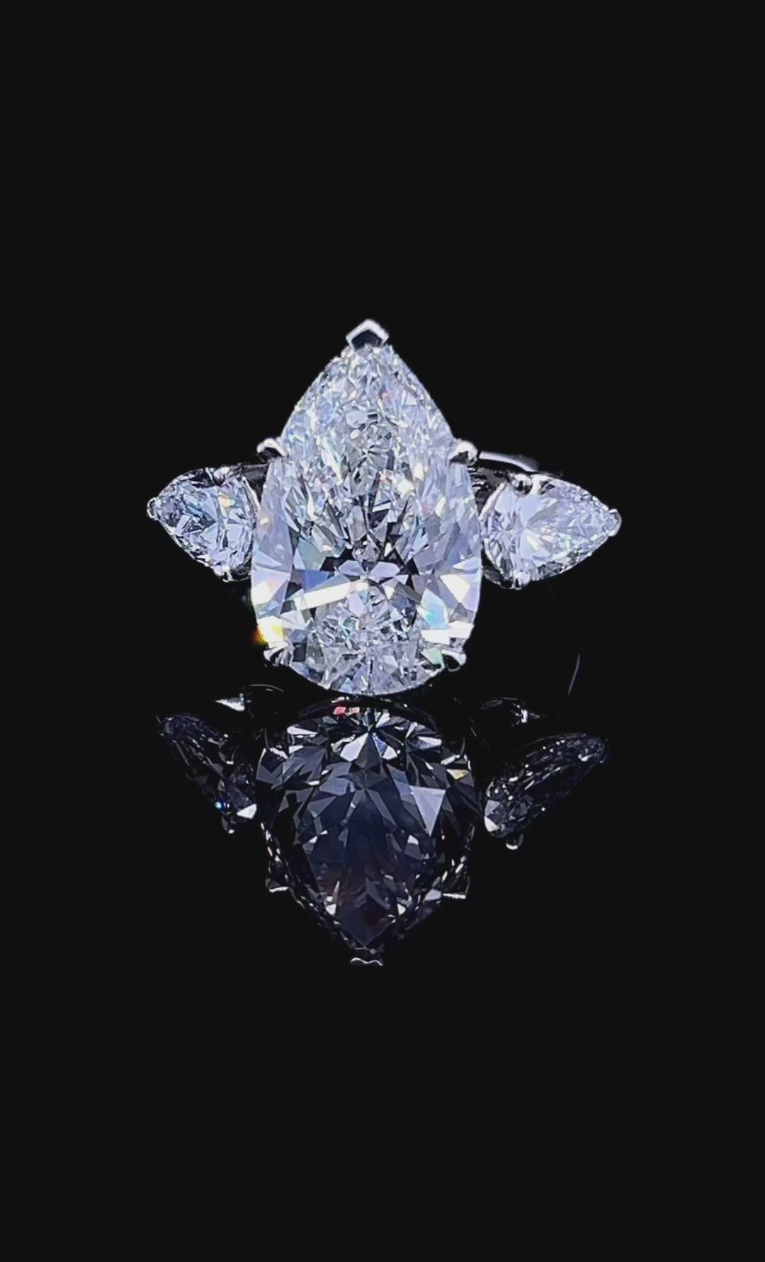 Introducing the 8CT Pear Trilogy Ring, a stunning piece of jewelry that features three pear-shaped diamonds totaling 8 carats. With its unique design and high-quality diamonds, this ring is sure to make a statement and become a treasured addition to any collection. Elevate your style and add a touch of elegance with this beautiful trilogy ring.