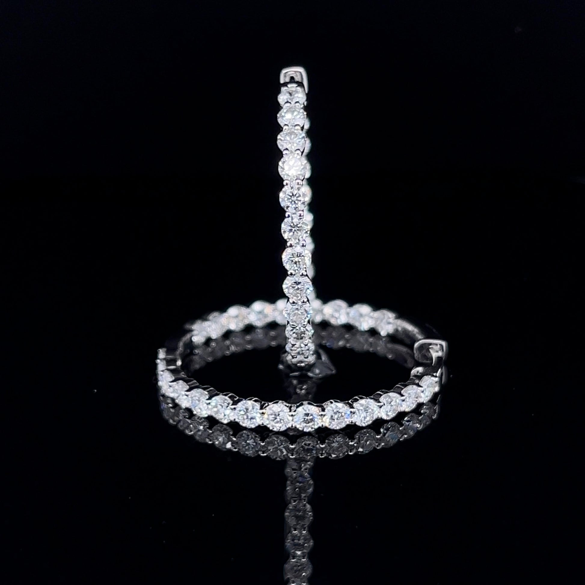 With a total diamond carat weight of 3 CTS, these earrings are beautifully set in PT 7 . Featuring 46 meticulously placed diamonds, they shine with unparalleled clarity and sparkle. Weighing 5.5 grams, they provide a luxurious yet comfortable fit.
