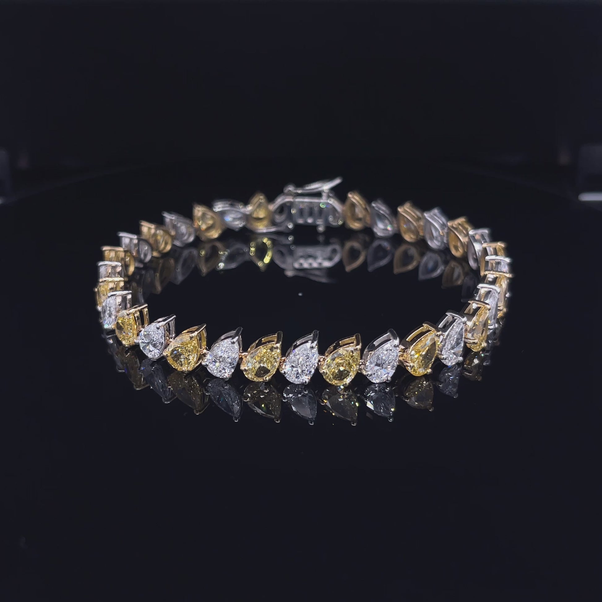 This Fancy Yellow Pear Diamond Bracelet showcases expertly cut pear-shaped yellow diamonds, known for their vibrant hue and exceptional clarity. Designed with precision, the bracelet highlights the natural beauty of each gemstone, offering a luxurious accessory that combines elegance with rarity. Ideal for connoisseurs seeking a distinctive and sophisticated piece.