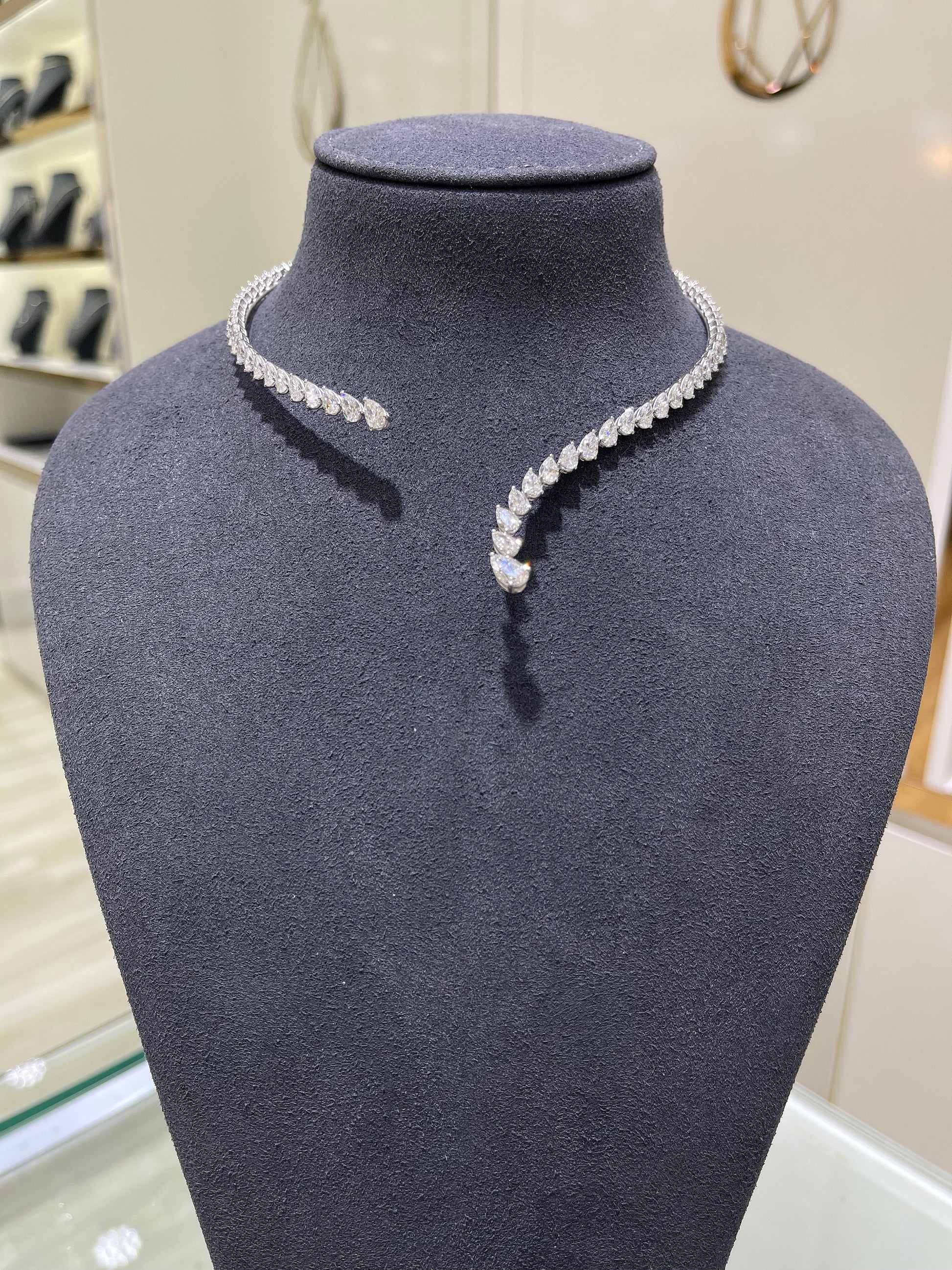 Enhance your neckline with our Pear One Line Diamond Choker . This unique choker features a single line of sparkling diamonds that add elegance and sophistication to any outfit. Made with expert craftsmanship, it's the perfect accessory for any special occasion.